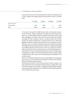 Investments amount to € 35,314 thousand and refer solely to the investments held