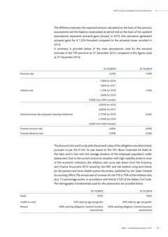 estimate of the TFR provision at 31 December 2015, compared to the figures used