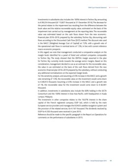 financial plan 2016–2019, prepared by the subsidiary Techno Sky, discounting cash