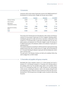 The inventories allowance increased by € 1,344 thousand due to spare parts becoming