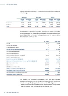 The table below shows the figures at 31 December 2015 compared to 2014, and the