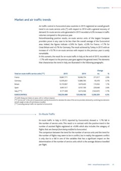En-route traffic in Italy in 2015, reported by Eurocontrol, showed a -1.7% fall in