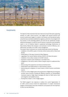• Restructuring and completion of control towers at Rome Fiumicino and Brindisi