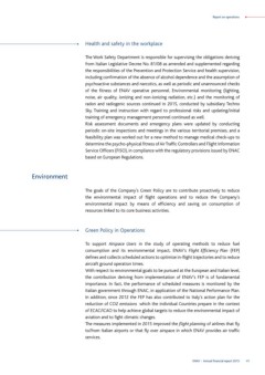 of the fitness of ENAV operative personnel. Environmental monitoring (lighting,
